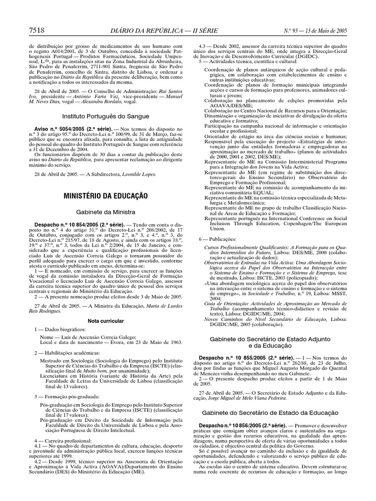 7522 DIÁRIO DA REPÚBLICA — II SÉRIE N.o 93 — 13 de Maio de 2005