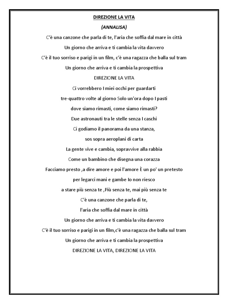 DIREZIONE LA VITA, DIREZIONE LA VITA