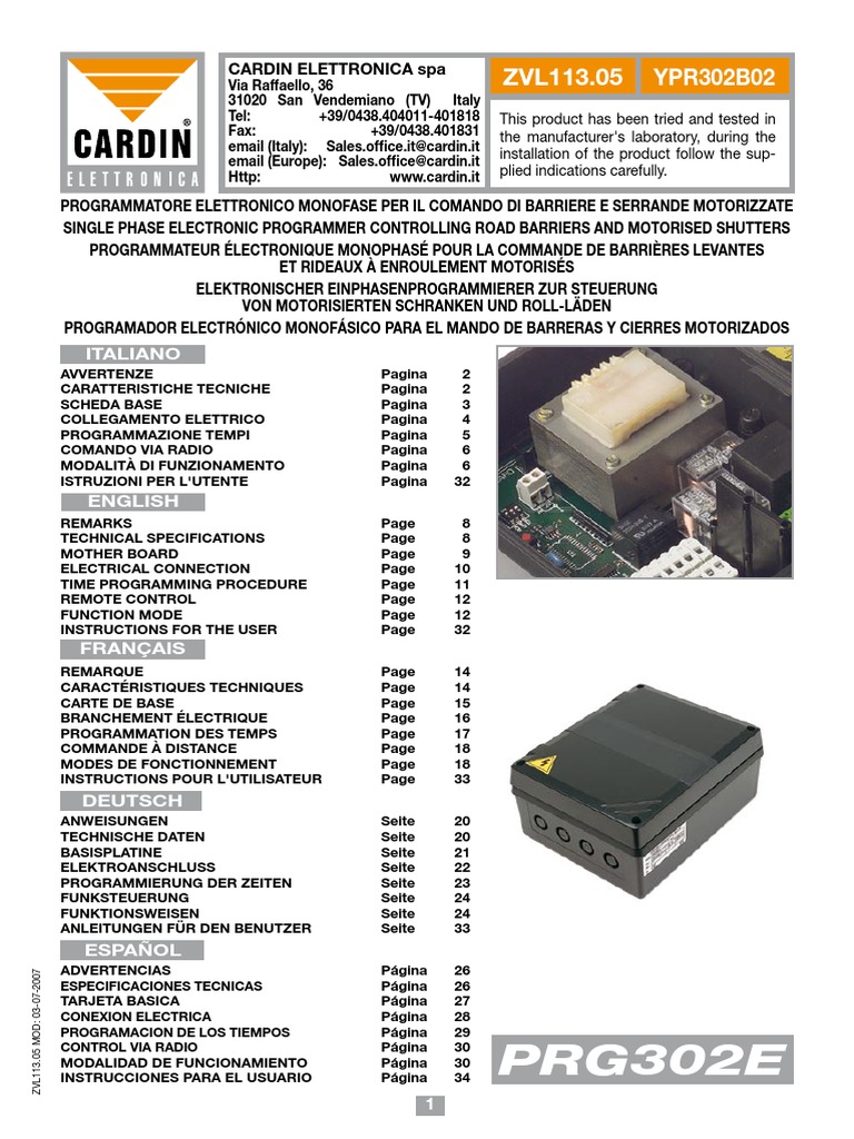 CARDIN ELETTRONICA spa CODICE SERIE MODELLO DATA