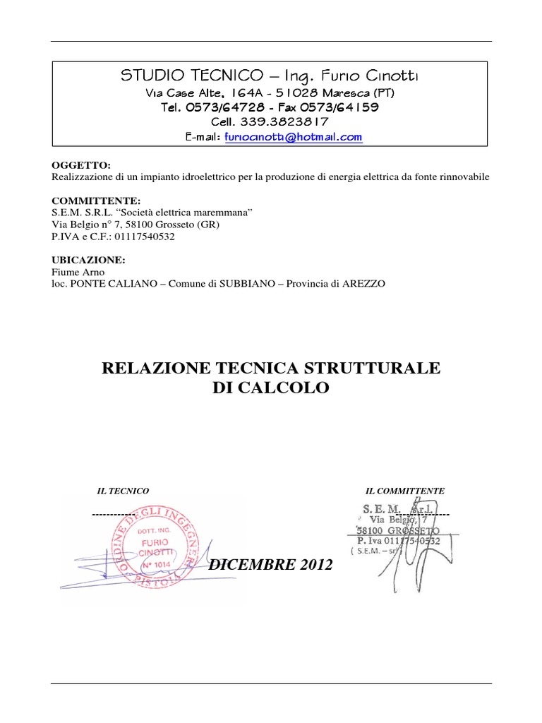 Centrale idroelettrica ad acqua fluente Committente:S.E.M.