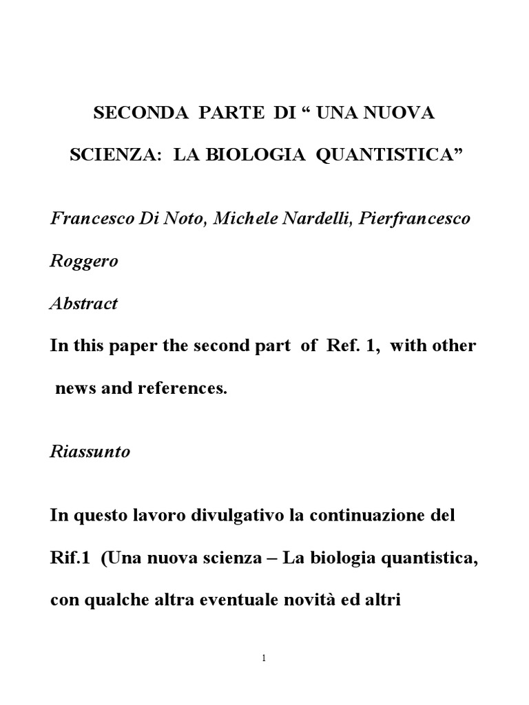 Rif.1 (Una nuova scienza – La biologia quantistica,