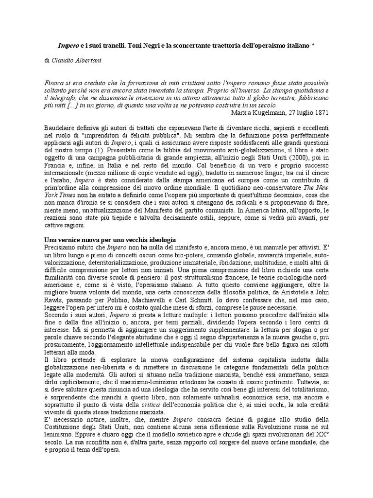 E che dire dell’imperialismo? Come sempre, la riflessione di Negri parte da inquietudini legittime.