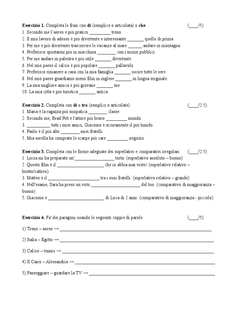 4. Nell'esame, Sara ha preso un voto _____________________ del tuo. (comparativo di maggioranza –