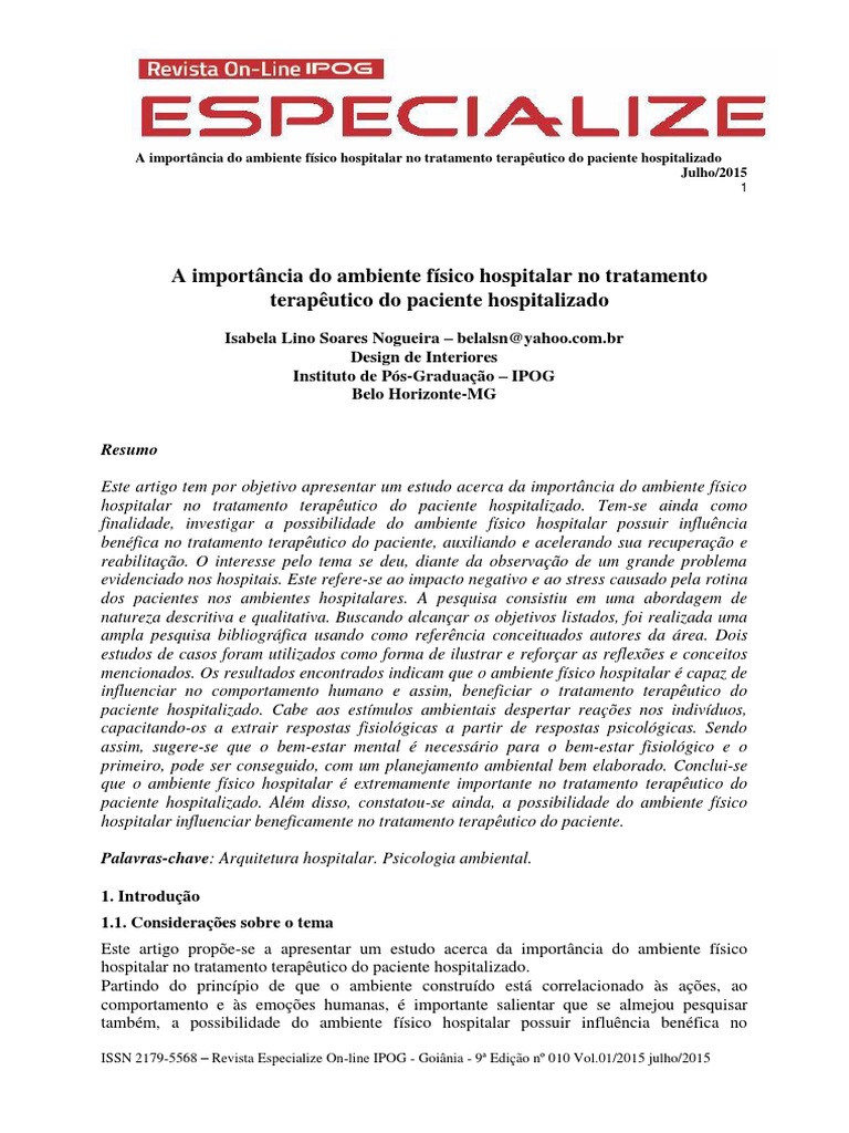 hospitalar influenciar beneficamente no tratamento terapêutico do paciente.