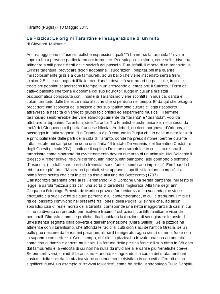 lo sapremo con certezza. Con il tempo, di fatto, la pizzica ha trovato una sua autonomia