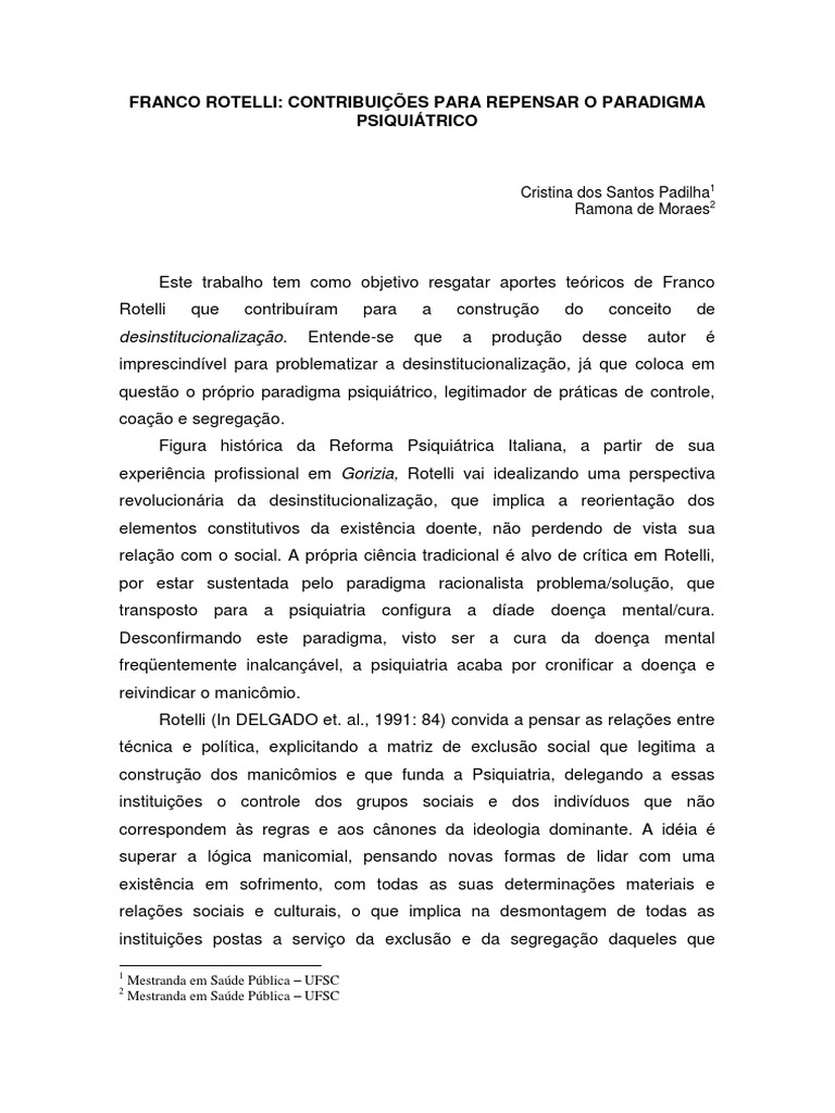 FRANCO ROTELLI: CONTRIBUIÇÕES PARA REPENSAR O PARADIGMA
