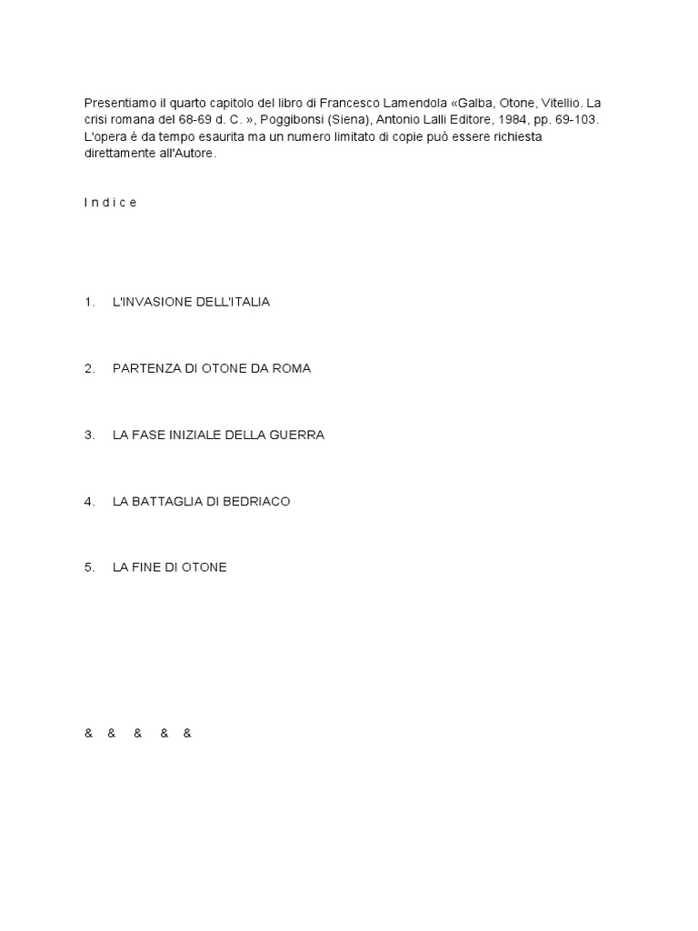 capo si farà avanti per sostituire Otone nella lotta contro le pretese di Vitellio. Il giorno