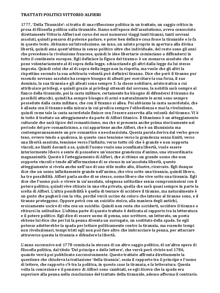 1777, ‘Della Tirannide’: si tratta di una riflessione politica in un trattato, un saggio critico in