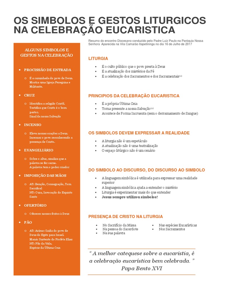OS SIMBOLOS E GESTOS LITURGICOS