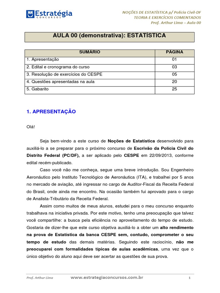 na prova de Estatística da banca CESPE sem, contudo, comprometer o seu