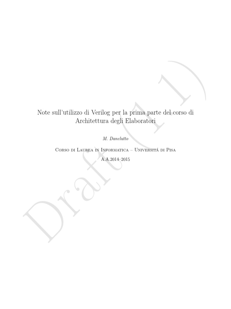 Queste note non rappresentano un corso di Verilog, tuttavia. Il linguaggio é introdotto solo sommaria-