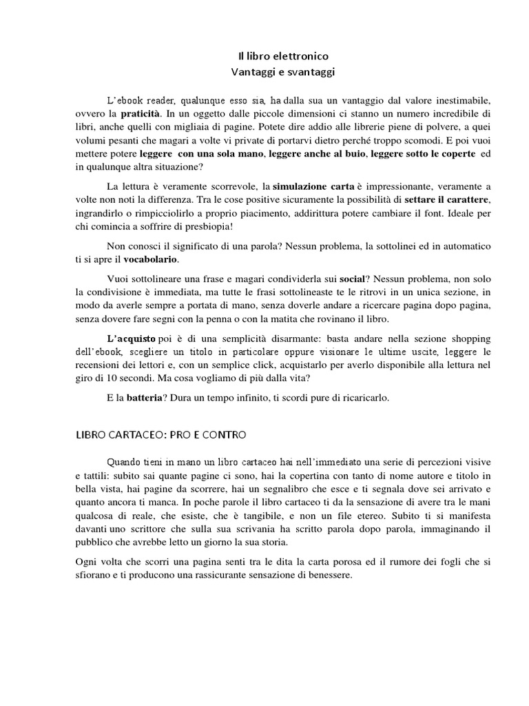 LIBRO CARTACEO: PRO E CONTRO