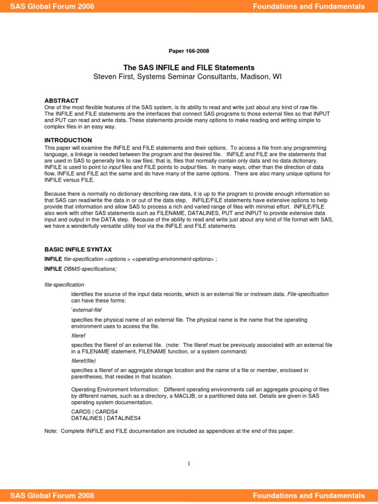 This paper will examine the INFILE and FILE statements and their options. To access a file from any programming