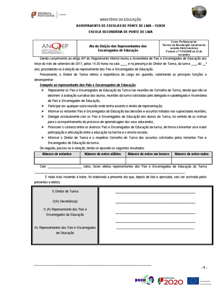 Com ____________________ votos, foram eleitos representantes dos Pais e Encarregados de Educação da Turma