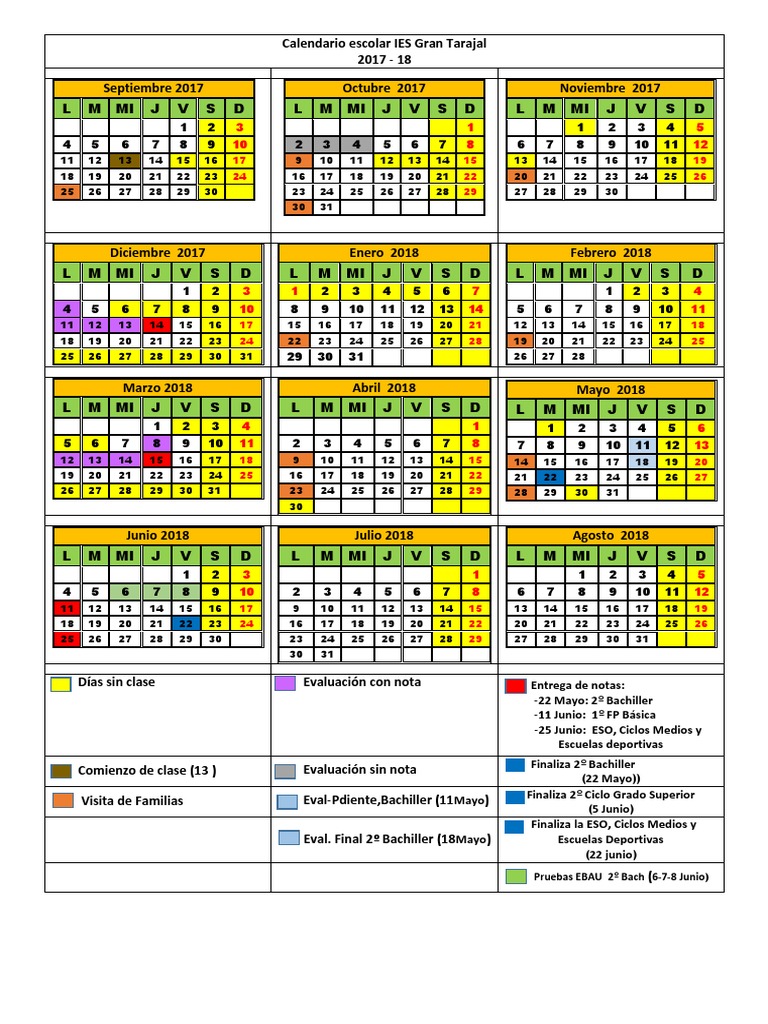 Calendario escolar IES Gran Tarajal