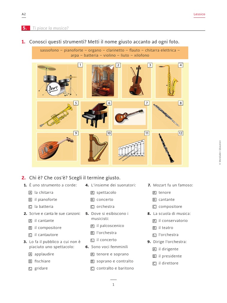 1. Conosci questi strumenti? Metti il nome giusto accanto ad ogni foto.