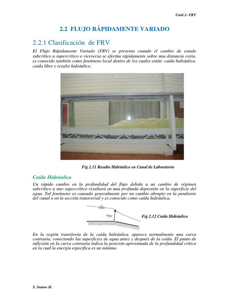 del canal o en la sección transversal y es conocido como caída hidráulica.