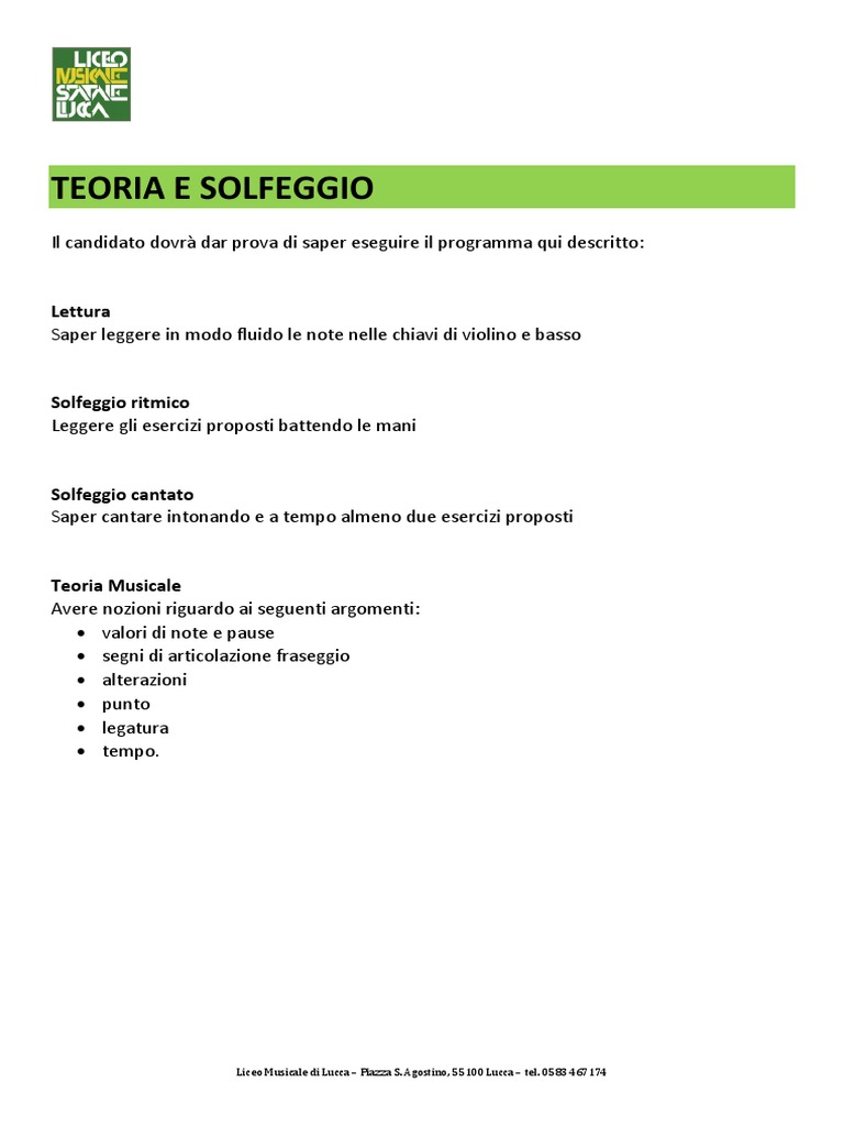 Liceo Musicale di Lucca – Piazza S. Agostino, 55100 Lucca – tel. 0583 467174