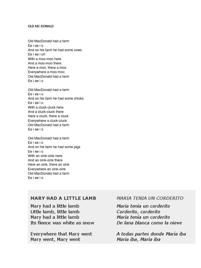 Mary had a little lamb María tenía un corderito