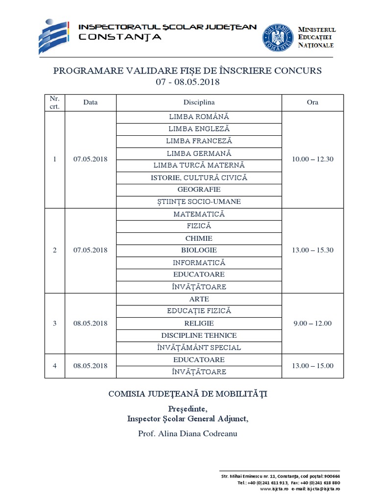 PROGRAMARE VALIDARE FIȘE DE ÎNSCRIERE CONCURS