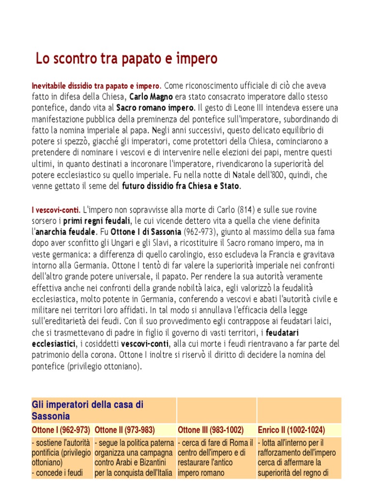 religiosa, per rafforzare il potere imperiale sui signori laici, mentre in Italia l'investitura