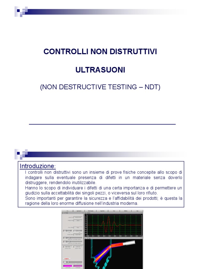 • I controlli non distruttivi con ultrasuoni sfruttano i fenomeni della