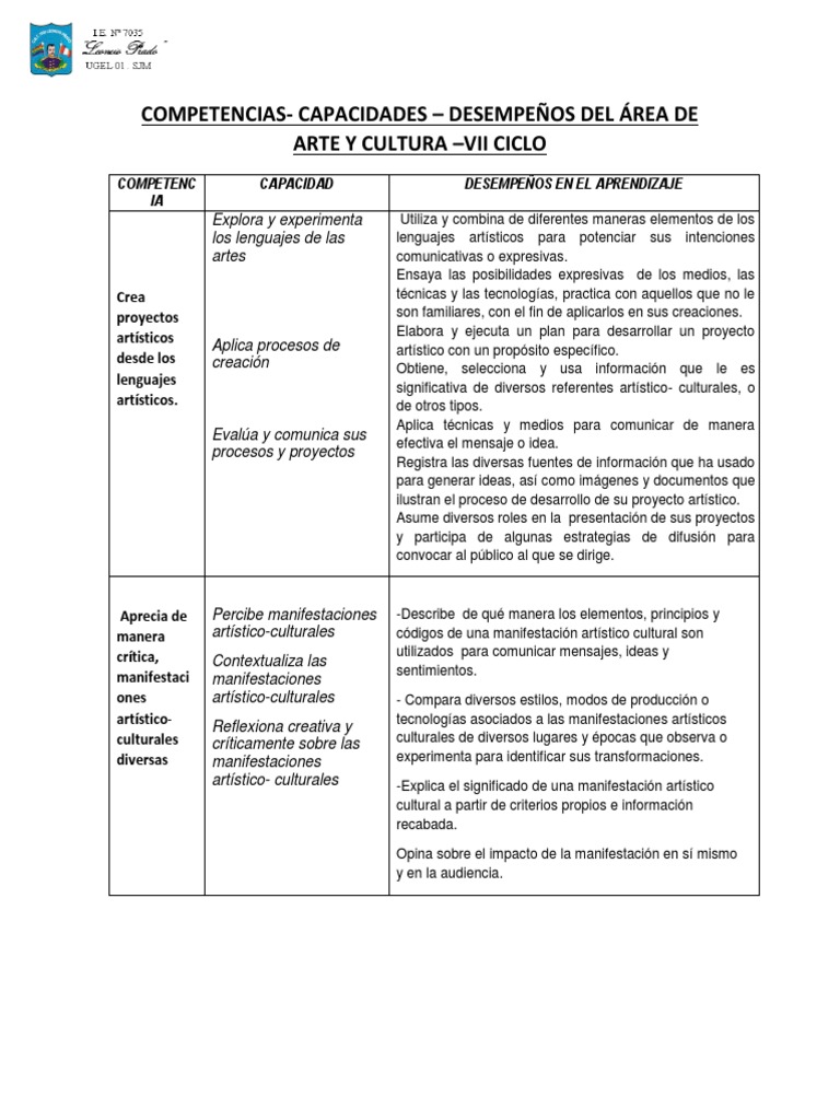 COMPETENCIAS- CAPACIDADES – DESEMPEÑOS DEL ÁREA DE
