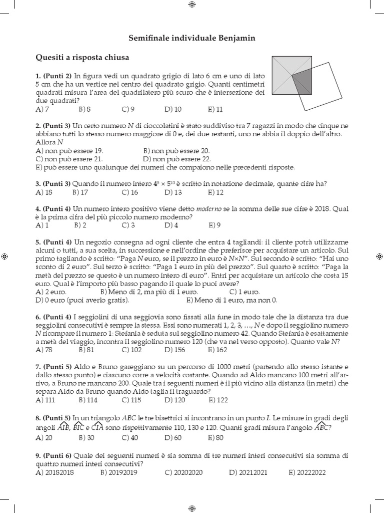 9. (Punti 6) Quale dei seguenti numeri è sia somma di tre numeri interi consecutivi sia somma di