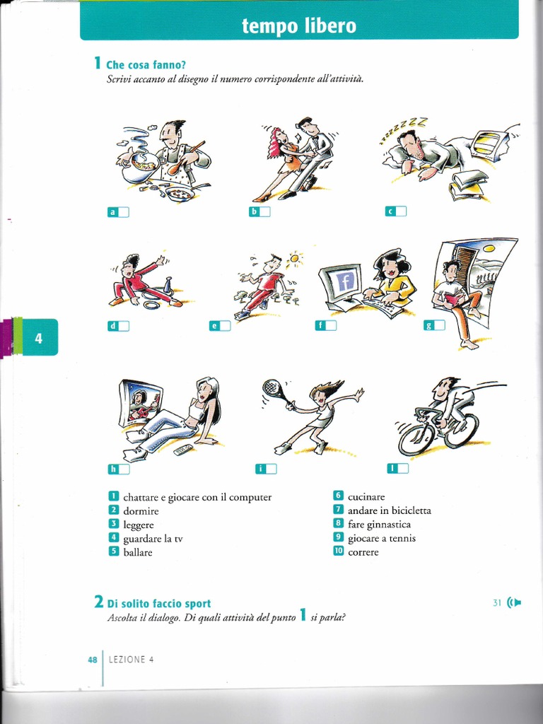 il rap il calcio i fumetti la musica classica il corso d'italiano dormire