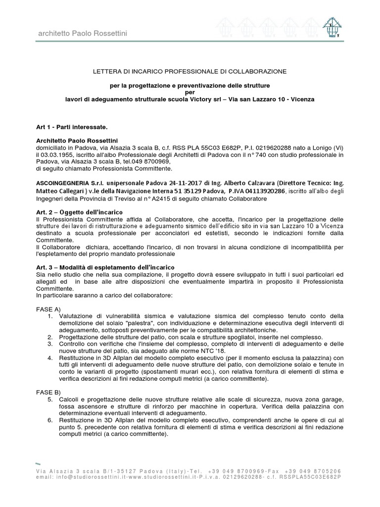 LETTERA DI INCARICO PROFESSIONALE DI COLLABORAZIONE