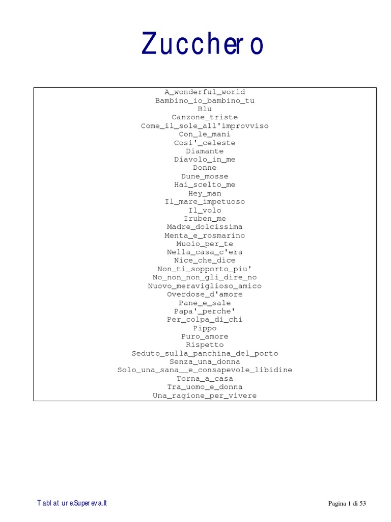 CANZONE TRISTE - ZUCCHERO FORNACIARI