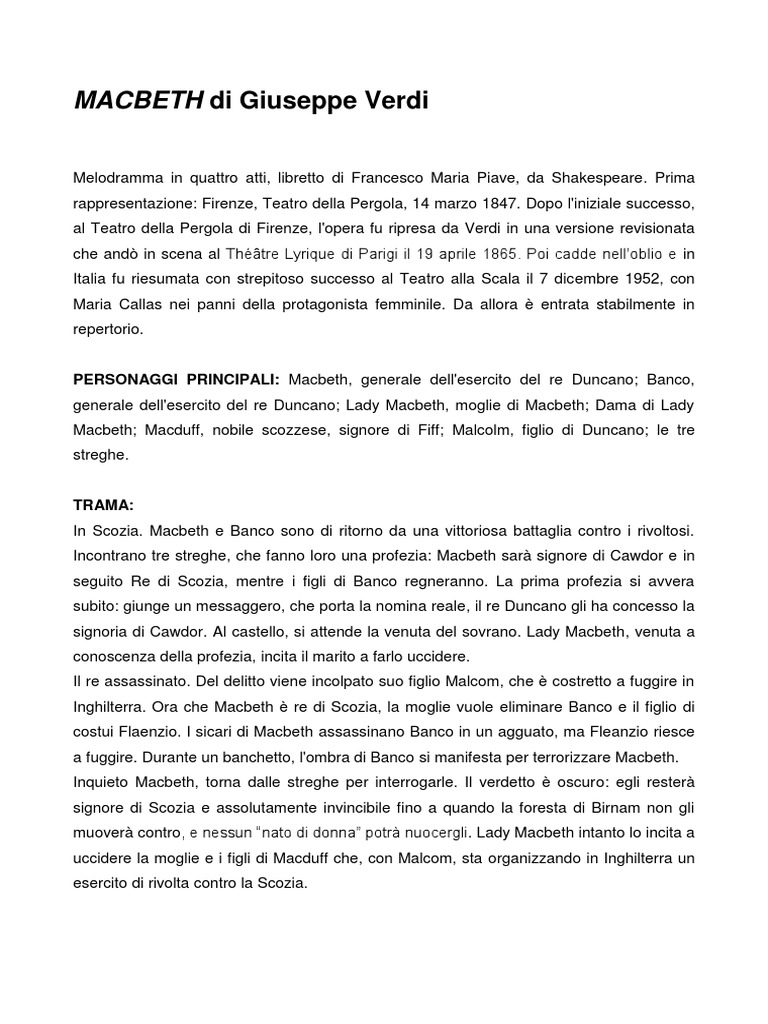 Melodramma in quattro atti, libretto di Francesco Maria Piave, da Shakespeare. Prima