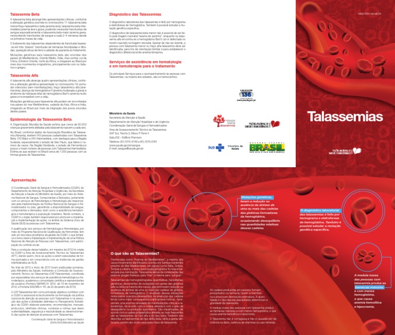 possui o maior número de pessoas com Talassemia Intermediária. E-mail: sangue@saude.gov.br