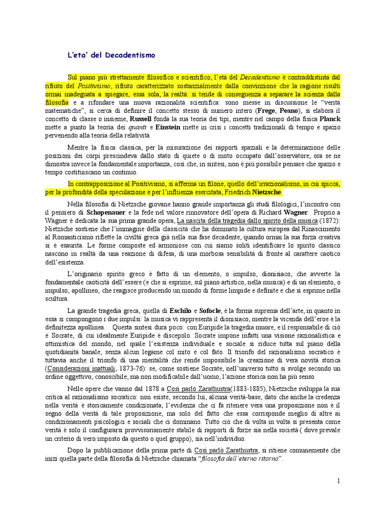 Sul piano più strettamente filosofico e scientifico, l’età del Decadentismo è contraddistinta dal