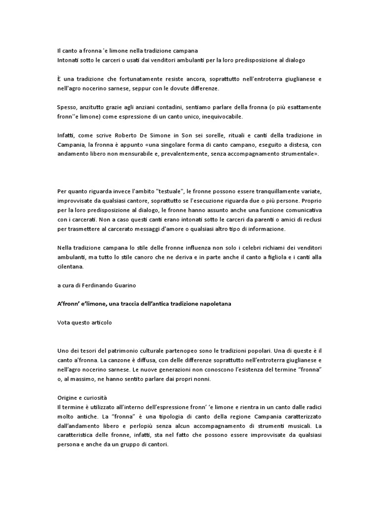 Campania, la fronna è appunto «una singolare forma di canto campano, eseguito a distesa, con
