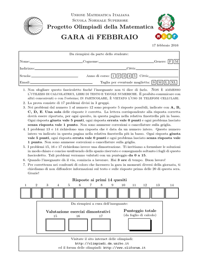 2. La prova consiste di 17 problemi divisi in 3 gruppi.