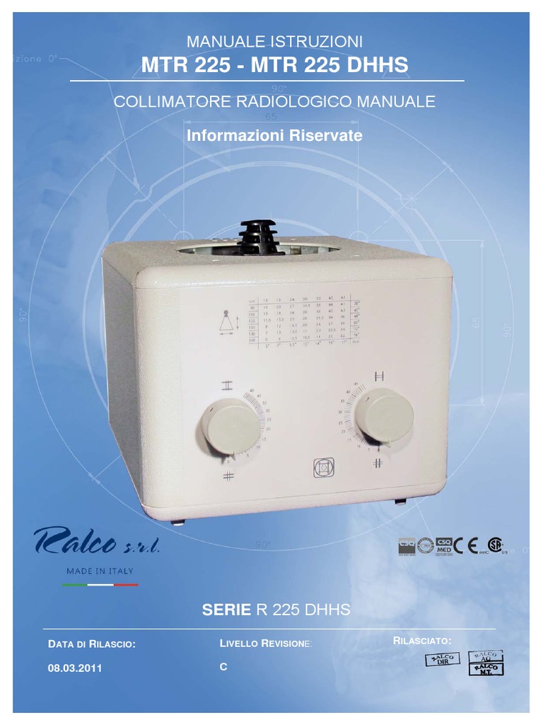 DEL COLLIMATORE RADIOLOGICO VANNO COMUNICATE IMMEDIATAMENTE ALLA