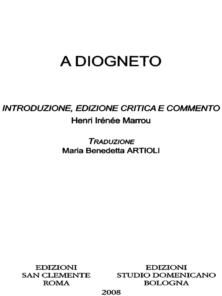 L e domande di D iogneto ( 1 , 1) .................................... p. 97
