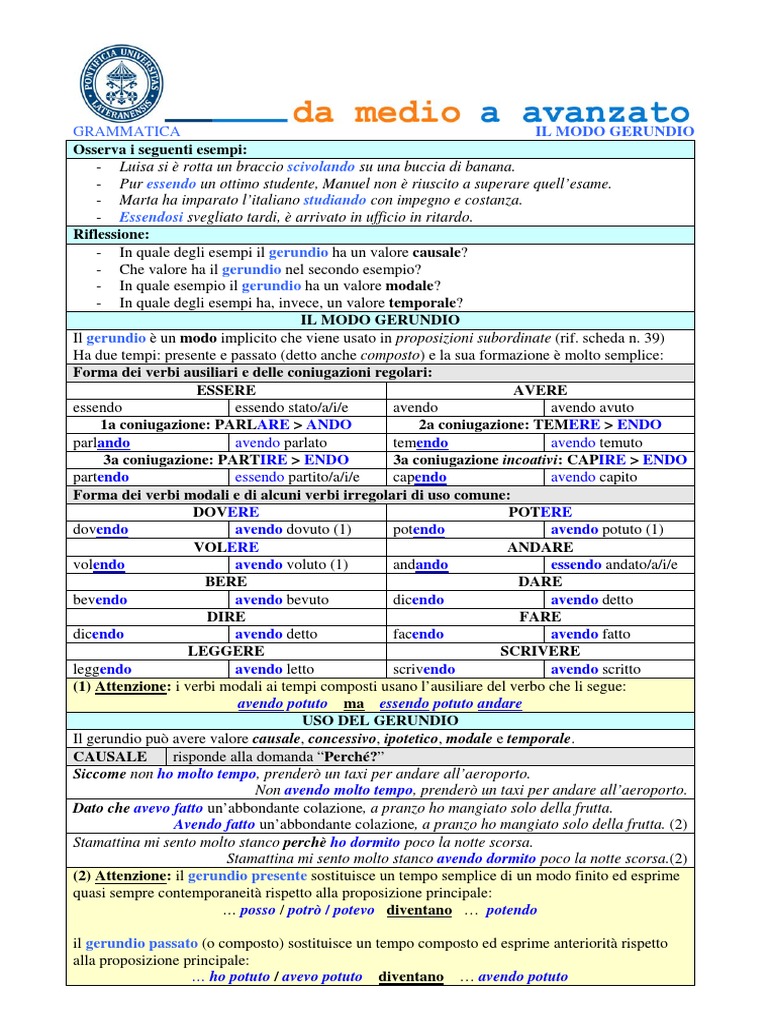 GRAMMATICA IL MODO GERUNDIO