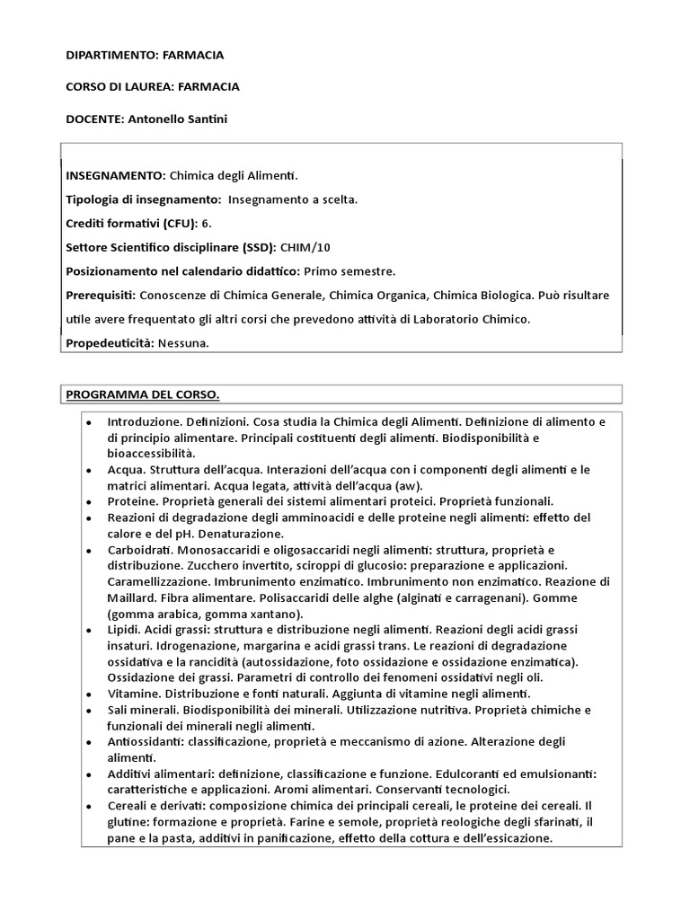 Il corso di Chimica degli Alimenti si propone di trasmettere ai partecipanti alla attività formativa la