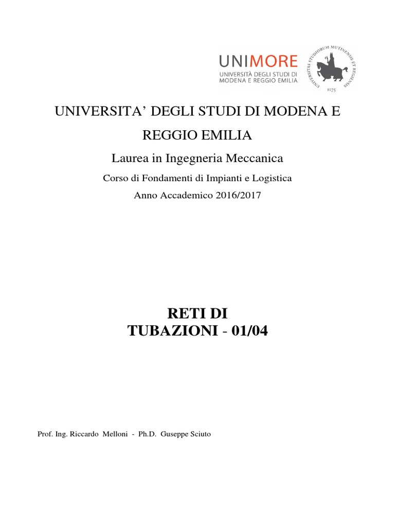 Dispensa: Reti di Tubazioni, Prof. Ing. Riccardo Melloni - Ph.D. Giuseppe Sciuto