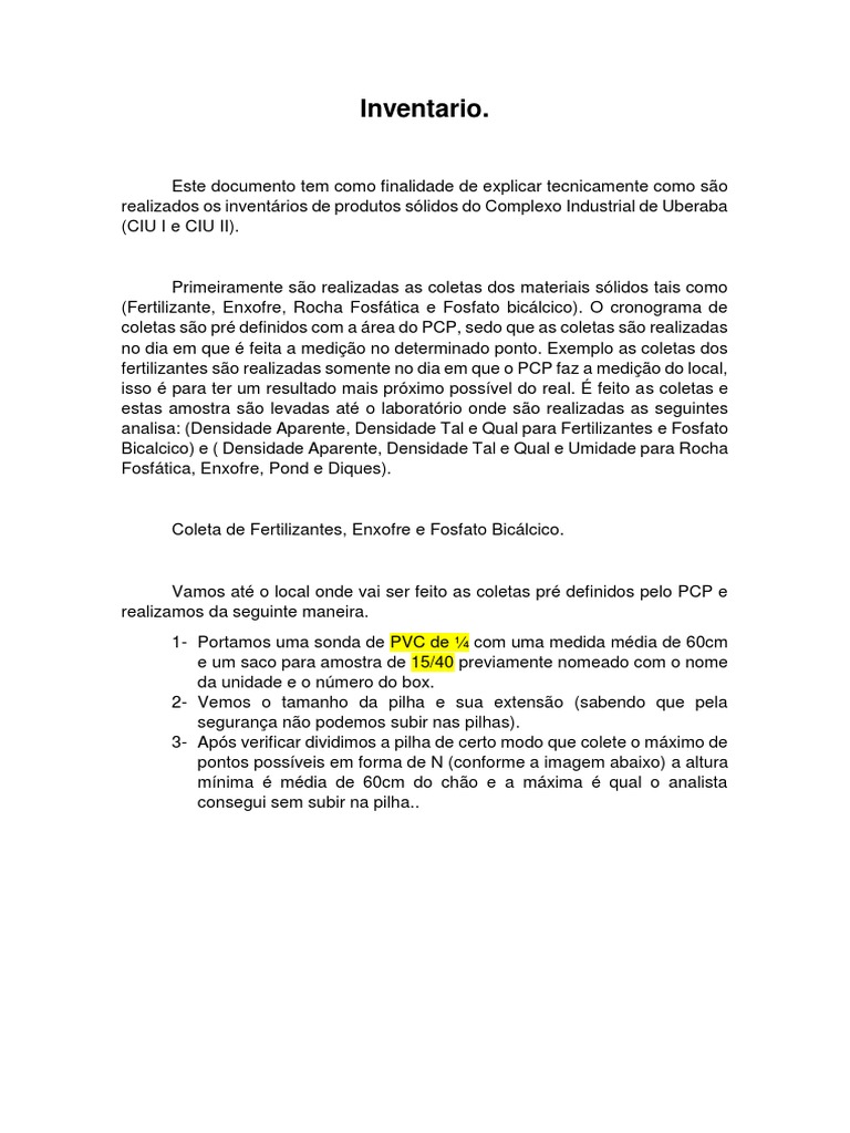 realizados os inventários de produtos sólidos do Complexo Industrial de Uberaba
