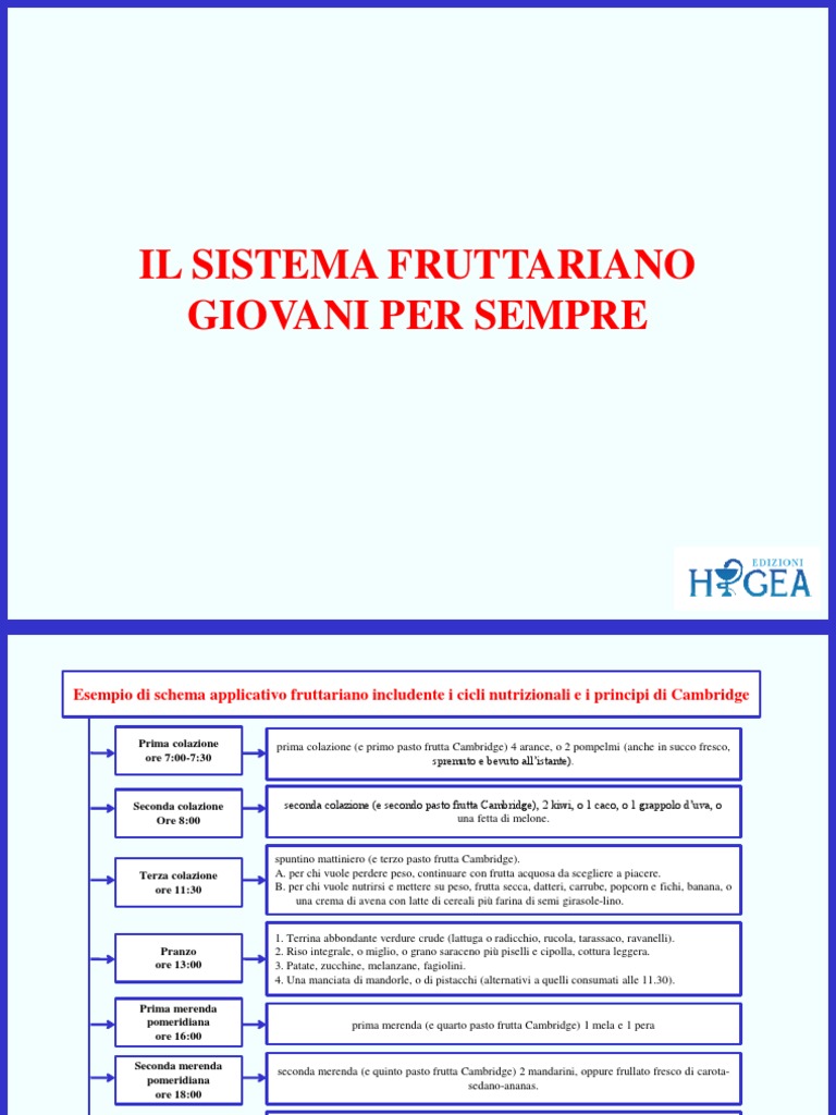 Esempio di schema applicativo fruttariano includente i cicli nutrizionali e i principi di Cambridge