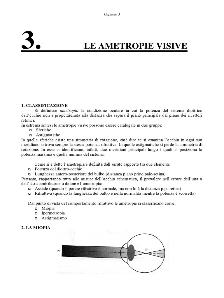 In estrema sintesi le ametropie visive possono essere catalogate in due gruppi:
