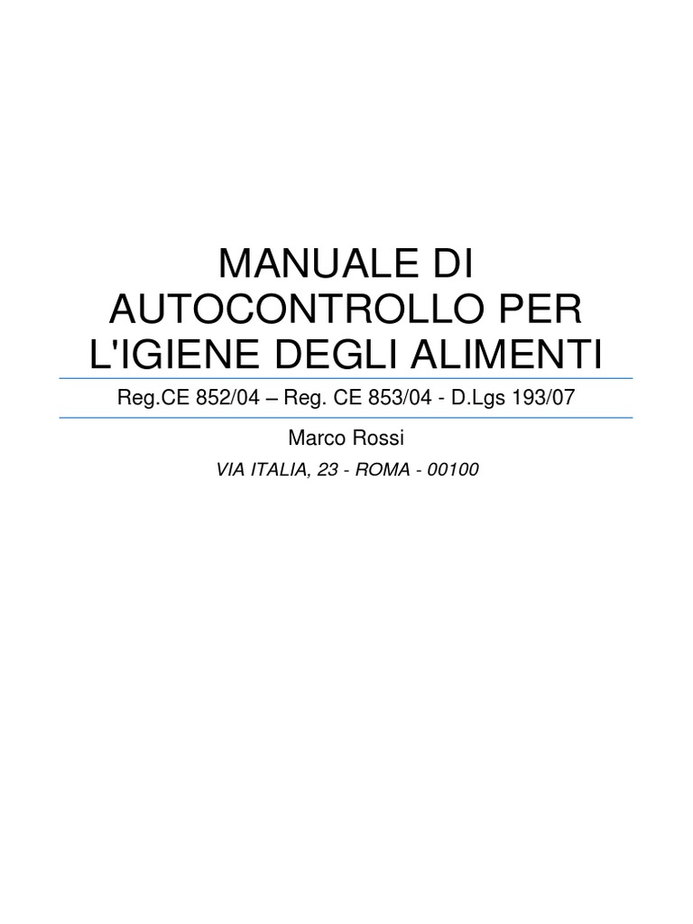 Responsabile del piano di autocontrollo: MARCO ROSSI