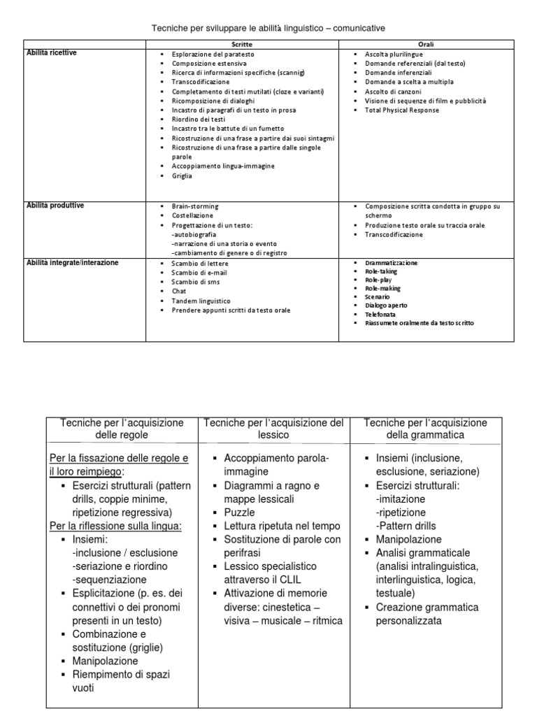 Tecniche per sviluppare le abilità linguistico – comunicative
