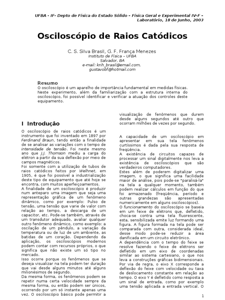O osciloscópio é um aparelho de importância fundamental em medidas físicas.