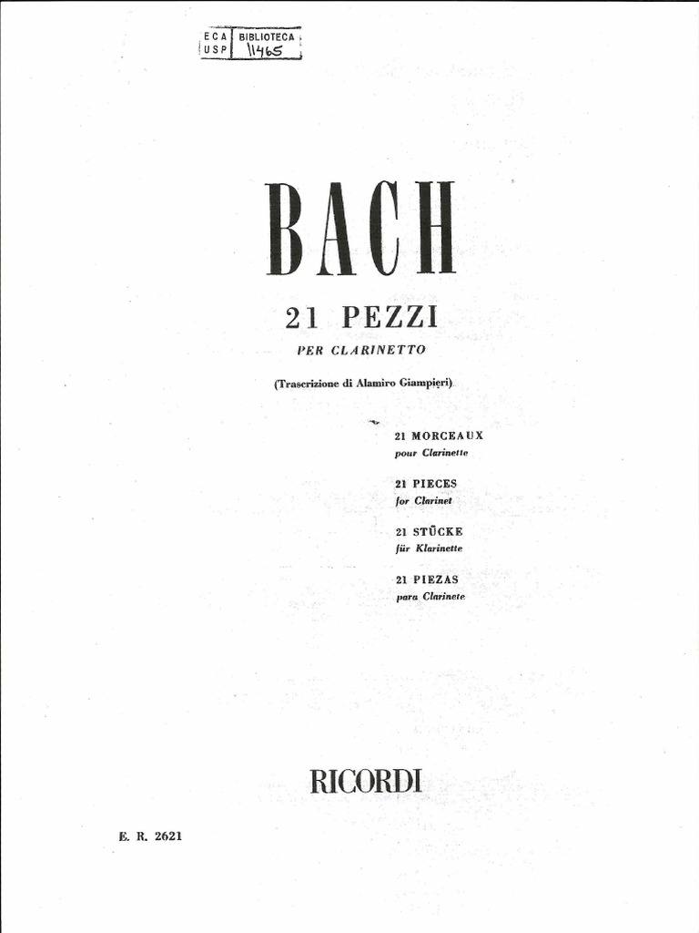 Johann Sebastian Bach - 21 Pezzi Per Clarinetto PDF