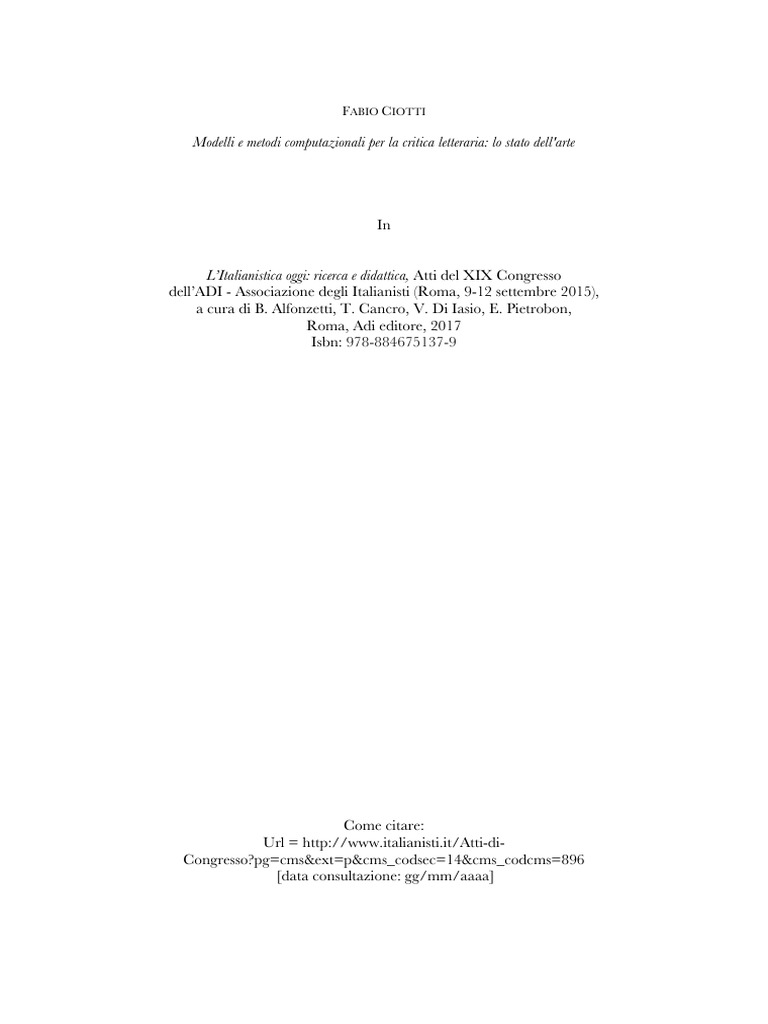35 Su questo aspetto ho insistito in F. CIOTTI, Sul distant reading: una visione critica, «Semicerchio», LIII, 2