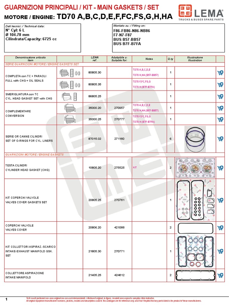 MOTORE / ENGINE: TD70 A,B,C,D,E,F,FC,FS,G,H,HA